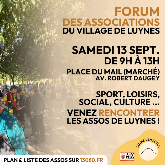 Nous serons présent le 13 septembre 2025 à Luynes au forum des associations de 9h à 13h
